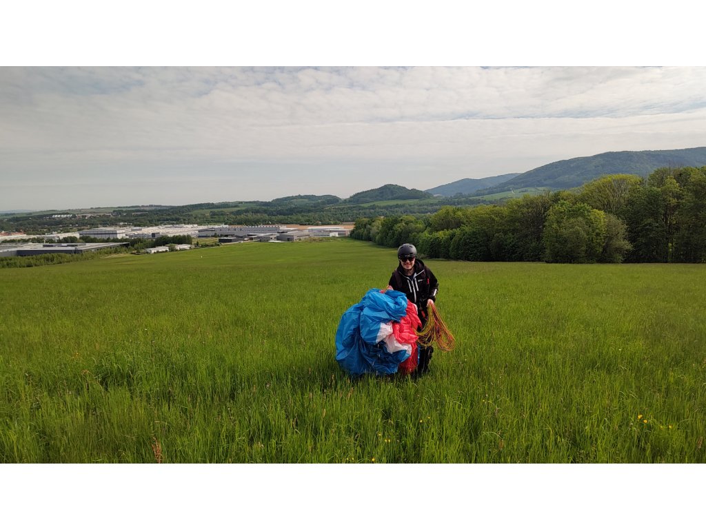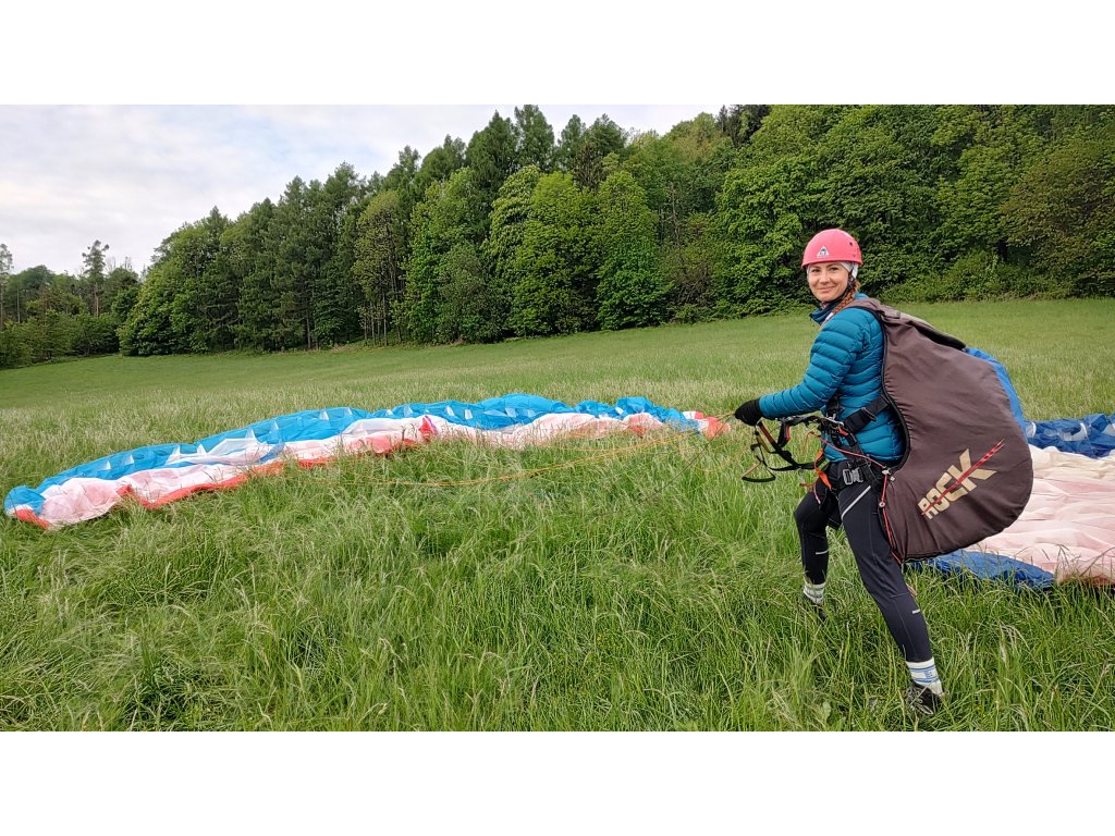 Vzhůru do vzduchu: Jakmile zkrotíte padák na rovině, přesuneme se na mírný svah. Tady přichází ten moment – rozběh a váš první samostatný let! Budete se vznášet pár metrů nad zemí a kopírovat svah.